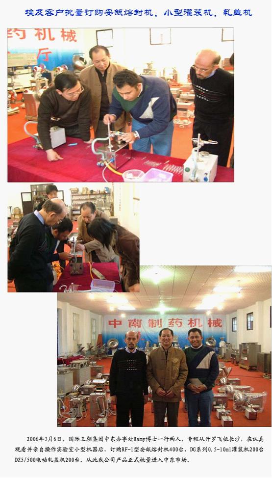 日期:2012/7/3 8:59:00 標簽:埃及客戶批量訂購安瓿熔封機 小型灌裝機 軋蓋機