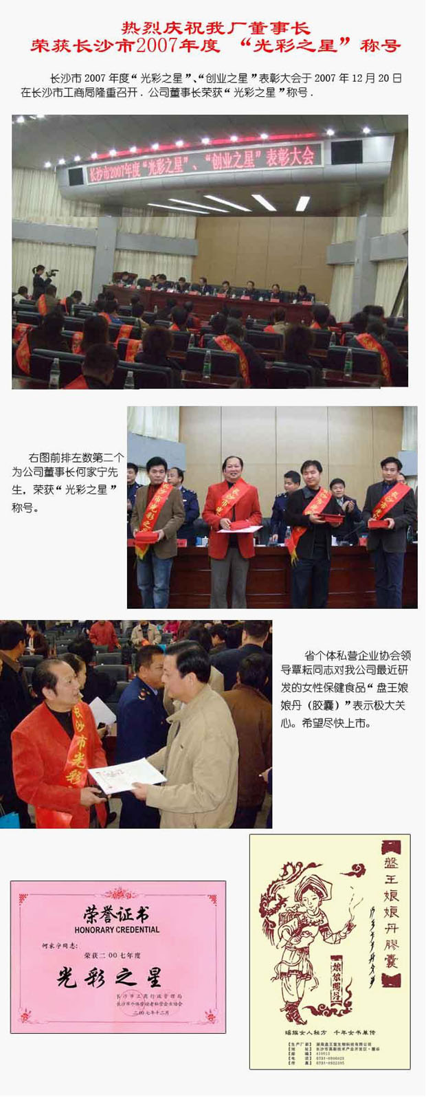 熱烈慶祝我廠董事長榮獲長沙市2007年度“光彩之星”稱號