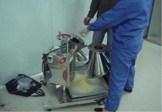 為什么要用快速整粒機整粒?因為物料經顆粒機制粒后,還需烘干,但烘干的顆粒會結成塊狀,因此需要再次整粒。有的藥廠為省錢,仍用顆粒機整粒,但整粒后多伴有粉末,且顆粒易破碎,顆粒質量不好。這是什么原因呢?這是由顆粒機整粒原理決定的: 顆粒機工作時,七角滾筒邊緣旋轉擠壓物料,使物料顆粒從篩孔中穿出,有一部分則因擠壓而變成粉末。