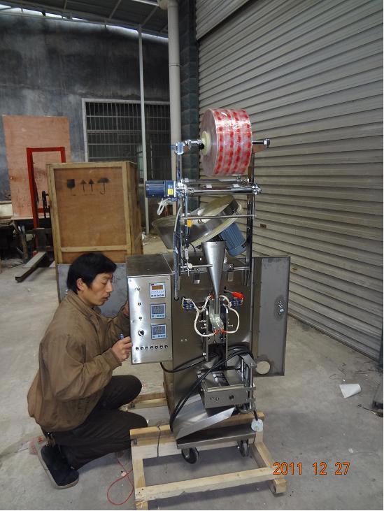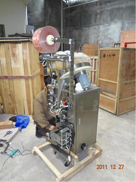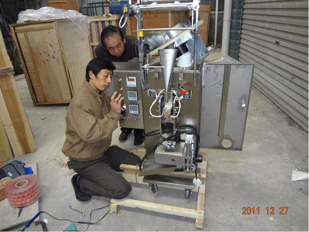 2011年12月份,漳州職業技術學院向我廠購進ZKB-P片劑包裝機,ZP-9旋轉式壓片機,DG系列液體灌裝機等設備一批,圖為我廠技工對ZKB-P片劑包裝機進行出廠調試。