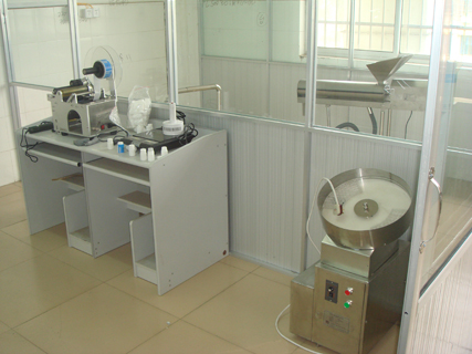 該院模擬藥廠布局圖也是由我廠設(shè)計(jì)而成。以上設(shè)備可滿足提取、濃縮、粉劑、顆粒劑、片劑、丸劑、膠囊劑、安瓿、口服液等劑型生產(chǎn)。