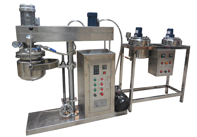 本機由乳化鍋(可升降、翻轉鍋體)水鍋、油鍋、真空裝置、加熱及溫控系統、冷卻系統、電器控制系統等組成。