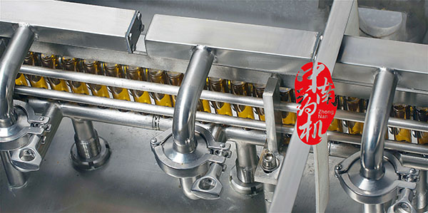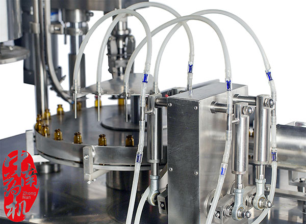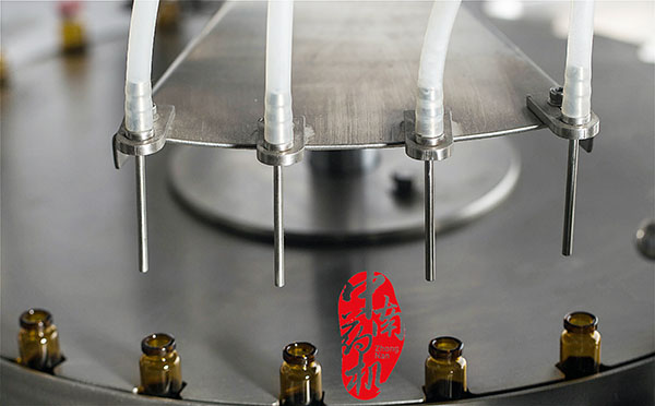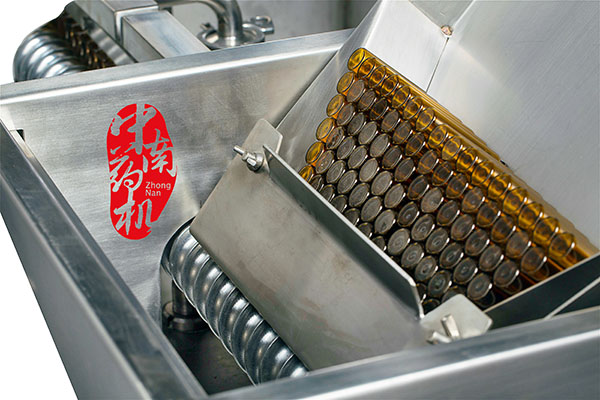 瓶子經(jīng)自來(lái)水(或回用水)及去離子水內(nèi)外沖洗,再由凈化壓縮空氣吹去表面的水珠,然后進(jìn)入烘干段烘干。瓶子出烘箱,進(jìn)入灌封機(jī)進(jìn)行灌裝軋蓋。可與燈檢機(jī),貼標(biāo)機(jī)等設(shè)備連線。符合GMP要求。