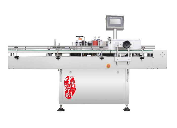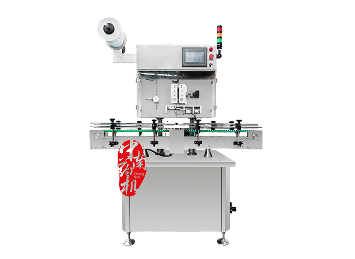 本機兼容性強,適用于各種圓形物體。需要貼標的瓶子經送瓶軌道的傳輸,通過瓶距調節機構將瓶子等距離拉開,光電傳感器感應到經過的瓶子,發出訊號,傳動系統得到訊號開通,開始送標,張緊系統實現對標紙帶的張緊,經過打碼機打碼,標紙定位光電傳感器根據標紙的長度定位,將標紙拉出一定的長度,在貼標部件和壓標部件的作用下,標紙自動剝離,平整地貼到瓶子要求的位置上,完成整個貼標過程。